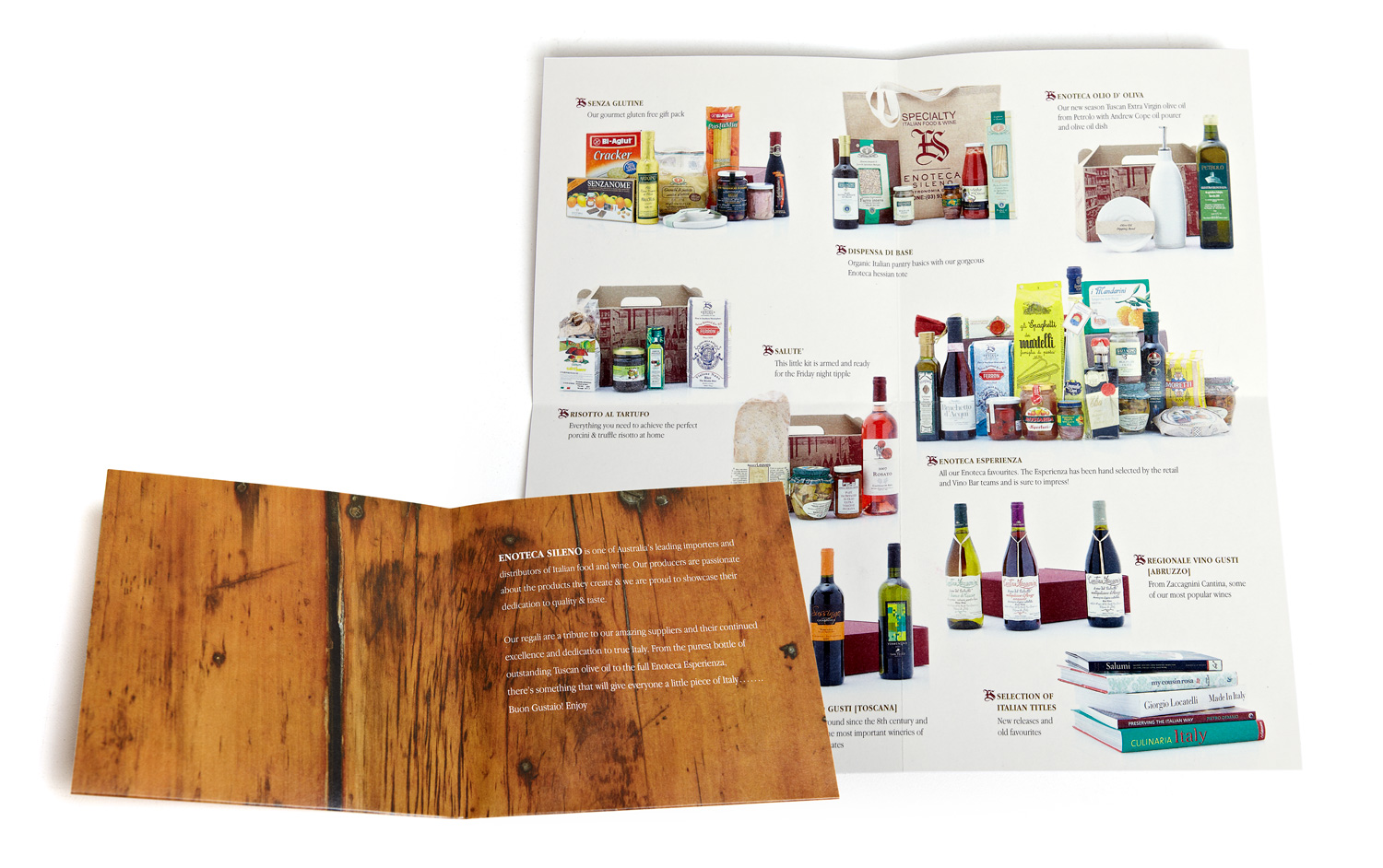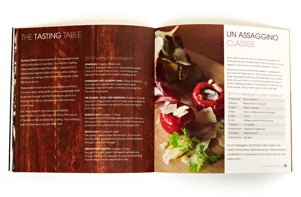 In collaboration with the marketing manager, I designed a brochure and a newsletter for Enoteca Sileno, a high-end Italian retail shop on Lygon Street, Melbourne. The brochure featured a unique design with a raw wooden panel on one side and a clean, crisp layout of various hampers on the other. Despite the absence of a formal brief, the client was extremely pleased with the result.